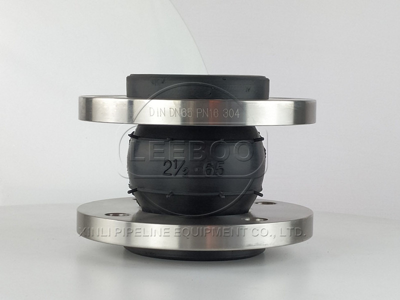 為了避免設(shè)備壓力瞬間升高造成球體爆;破,球體外配置有增壓圈,法蘭兩端配置有限位裝置,防止管道壓力升高產(chǎn)生超限徑向位移,從而起到保護(hù)設(shè)備的作用。本公司在原有的管道橡膠接頭的基礎(chǔ)上改進(jìn),滿(mǎn)足了原有管道橡膠接頭存在的弊端。