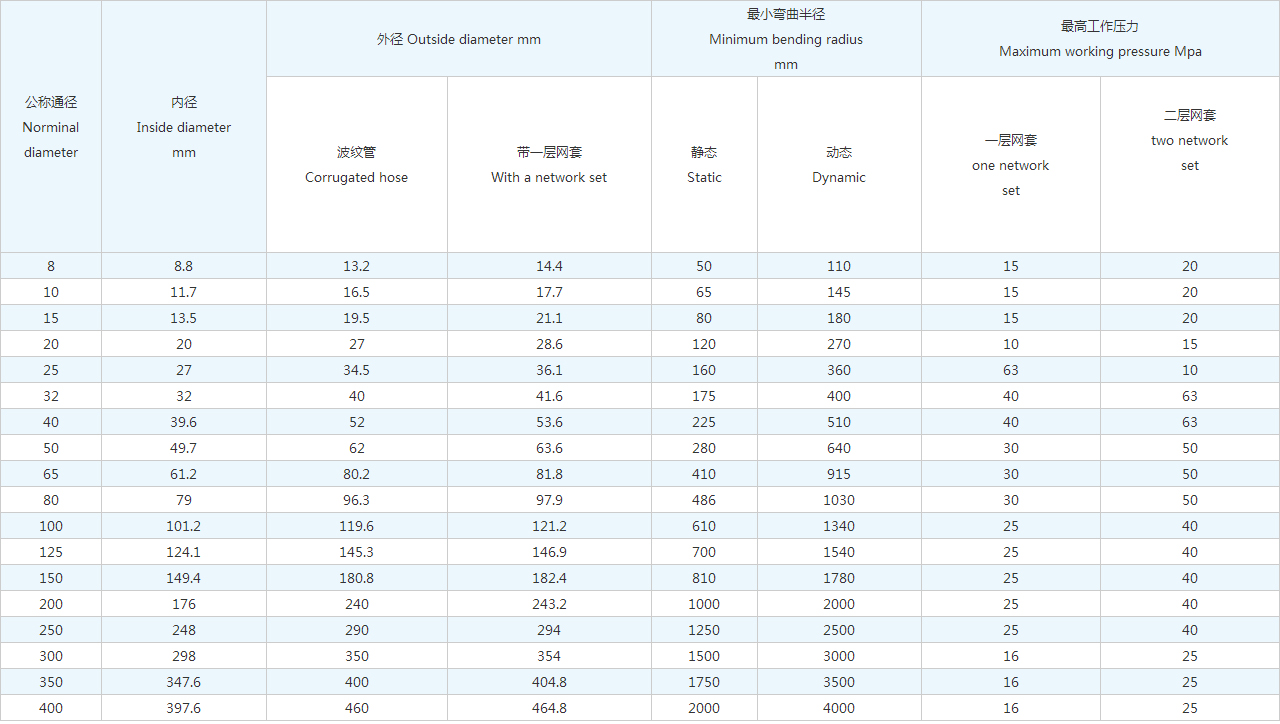 2.軟管管體為薄壁不銹鋼管體液壓成形,具有較強(qiáng)的柔韌性、伸縮性、彎曲和抗振能力強(qiáng)、編織網(wǎng)套的加強(qiáng)保護(hù)、使之具有更高的承壓能力。